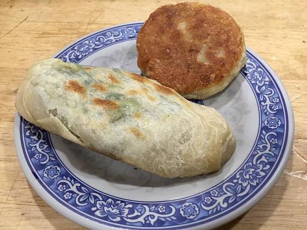 ▼ 左邊是豬肉餡餅 右邊是很夯的蔥餅 我們各拿了一份