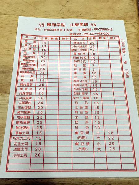 這天的第一站 就是朋友推薦 位在成功大學旁的《勝利早點》